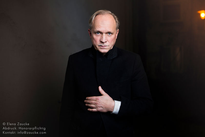 Ulrich Tukur ist einer der renommiertesten Schauspieler Deutschlands. Er wuchs in Westfalen, Hessen und Niedersachsen auf. Seine Jugend verbrachte er in der Wedemark in der Nähe von Hannover. Dort machte er auch 1977 sein Abitur und während eines Schüleraustauschs mit AFS (American Field Service) in Boston (USA) einen Highschool-Abschluß. Nach dem Wehrdienst studierte er Germanistik, Anglistik und Geschichte an der Universität Tübingen. 1980 begann er an der Staatlichen Hochschule für Musik und Darstellende Kunst in Stuttgart eine Ausbildung im Schauspiel. Nach Beendigung des Studiums wurde er 1983 von den Städtischen Bühnen Heidelberg engagiert. Bereits während seines Schauspielstudiums wurde er von Regisseur Michael Verhoeven entdeckt, und für die Verfilmung von „Die weiße Rose“ (1982) in der Rolle des Studenten Willi Graf besetzt. Seine Theaterkarriere begann er nur zwei Jahre später als SS-Offizier Kittel in Peter Zadeks legendärer Inszenierung von Sobols „Ghetto“ an der Freien Volksbühne Berlin. 1985 kam er zusammen mit Zadek ans Deutsche Schauspielhaus Hamburg und wurde dort bis 1995 in zahlreichen Haupt- und Nebenrollen besetzt. Anschließend spielte er an allen großen deutschsprachigen Theatern. Von 1995 bis 2003 war er zusammen mit Ulrich Waller Intendant der Hamburger Kammerspiele und spielte dort u.a. den Beckmann in „Draussen vor der Tür“. Am St. Pauli Theater Hamburg spielte er u.a. in „Kunst“, „Der Lord von Barmbeck“ und den Mackie Messer in „Die Dreigroschenoper“. In der Zeit spielte er u.a. auch in den Fernsehproduktionen „Stammheim“ (1986, Regie: Reinhard Hauff), „Zehner – Die unerzählte Geschichte“ (1993, Regie: Heinrich Breloer) und erneut mit Regisseur Michael Verhoeven in „Mutter`s Courage“ (1996).